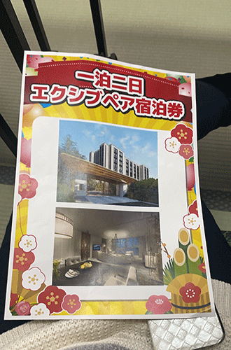 エクステリア事業部の日比野さんが新年会でみかんころがしゲームで優勝し、