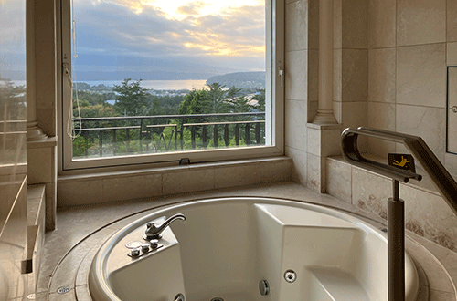 備え付けのジェットバスから、富士山や山中湖の姿を眺めることができます。