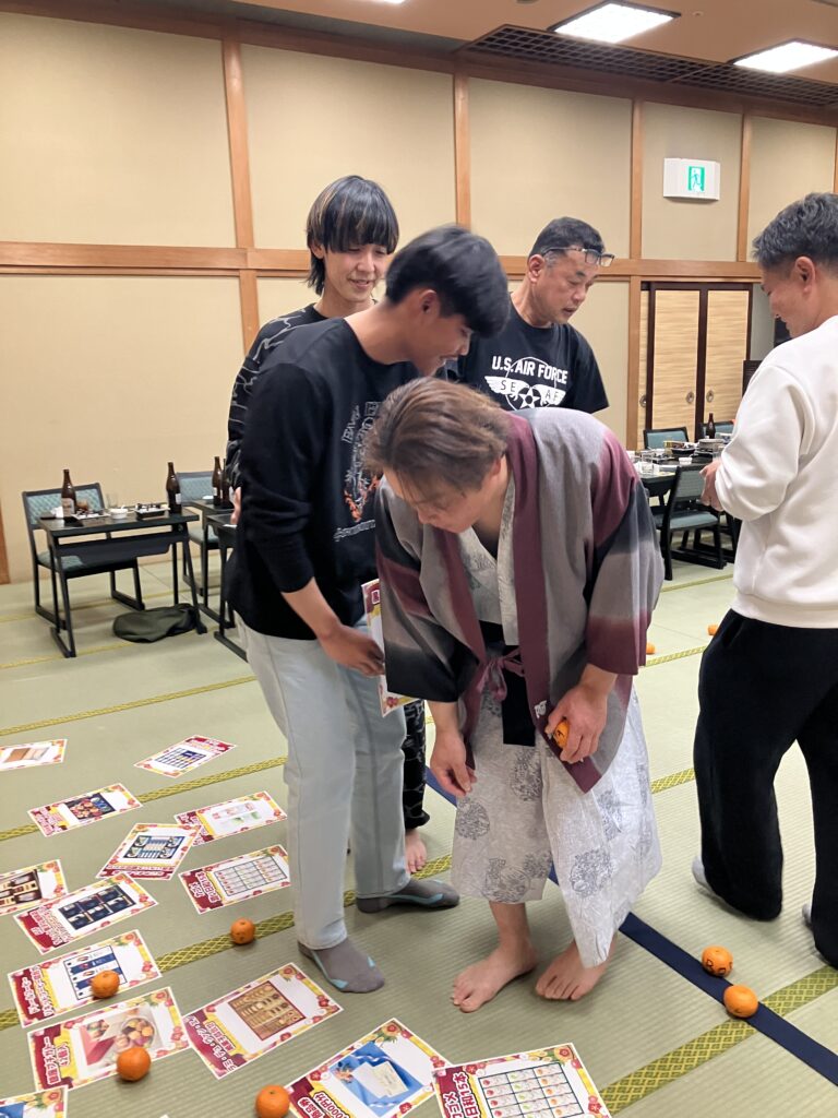 そしてランドプロスでは、恒例の賞品をかけたみかん投げゲーム!