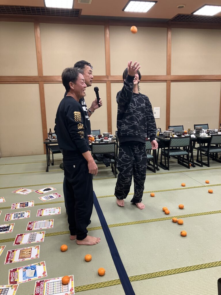 そしてランドプロスでは、恒例の賞品をかけたみかん投げゲーム!